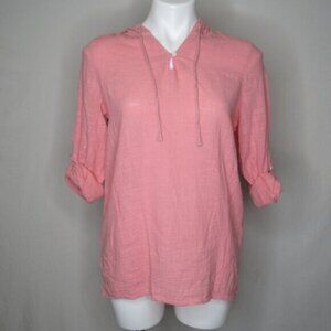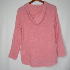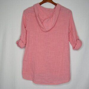 North River Pink Long Roll Tab Sleeve Hoodie Cotton Top Women's M Medium