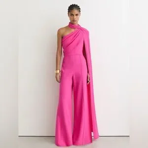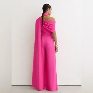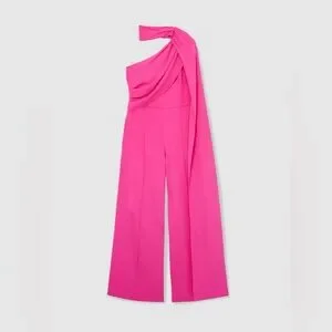 NWT REISS One-Shoulder Drape Wide-Leg Jumpsuit in Raspberry Pink