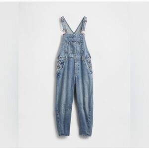 New with tags Gap UltraSoft Denim Horseshoe Overalls in Medium Indigo.
