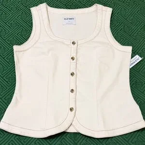 Old Navy Cream Button-Front Denim Vest M NWT