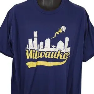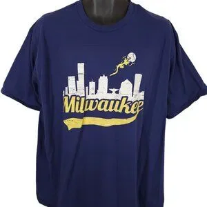 Milwaukee Brewers T Shirt Mens Size 3XL Blue MLB Baseball City Skyline