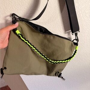 SHEIN Olive Green Messenger Bag with Neon Yellow Accent