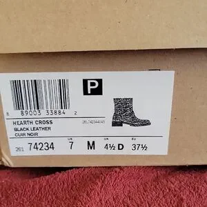 Structured mid-calf boot with a decorative side buckle. Smooth black upper for versatile styling. Low block heel for steady, comfortable wear. Pull-on design with elastic gore for easy fit.