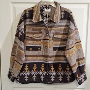 New In Southwestern Aztec Shacket Womens M Mustard Boho Western Jacket