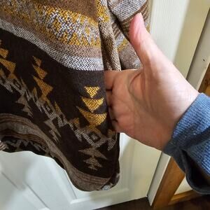 New In Southwestern Aztec Shacket Womens M Mustard Boho Western Jacket. This New In shacket features a bold southwestern geometric pattern in mustard, brown, black, and cream. It has a relaxed overjacket fit with long sleeves, button‑front closure, and chest pockets. The Aztec pattern gives it a western‑boho look that pairs well with denim, boots, and casual layers. Great for fall, festival season, or anyone who loves rustic or cowboycore style. A warm, easy‑to‑wear piece with strong trend appeal.. Layflat measurements: length 27; chest 23; sleeve length (from neck) 29
