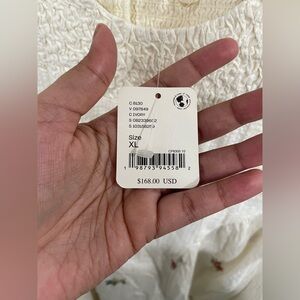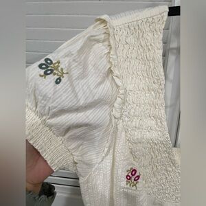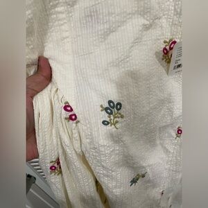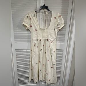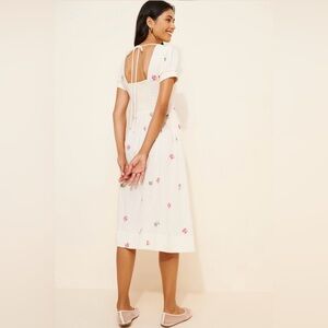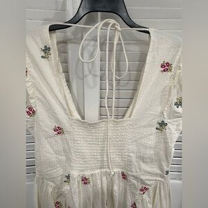 NWT Free People White Midi Dress with Pink & Green Floral Embroidery