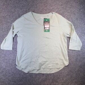 Kirkland Signature Womens XL V-Neck Slub Tee 3/4 Sleeve Cotton Sage Green NWT