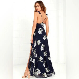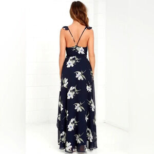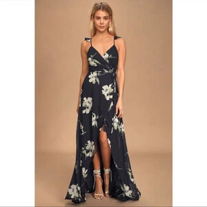 NWT Lulu's All Mine Navy Blue Floral Print High-Low Wrap Dress Medium