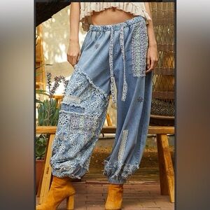 POL Patchwork Denim Lace Joggers