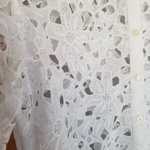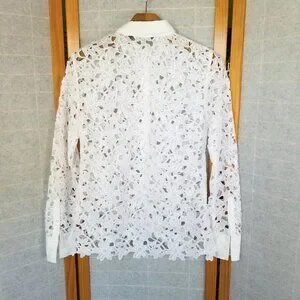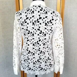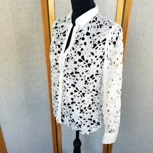 Banana Republic White Lace Top Size XS Long Sleeve Button Down Battenburg Floral