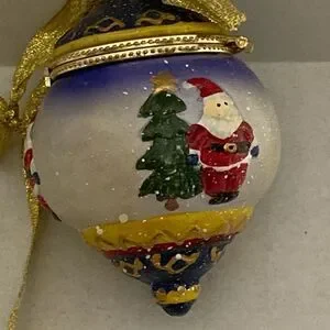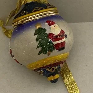 Santa Claus Christmas Tree Trinket Ball Box Porcelain Ornament Multicolor