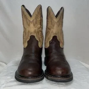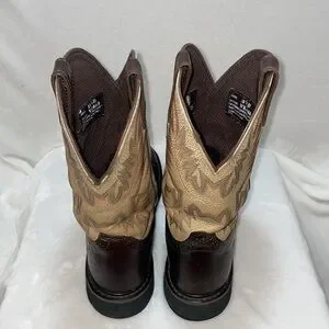 These incredibly high quality Justin work boots are in amazing pre-owned condition! These were alternated with other boots so they were not worn much and never worn for work rather only for leisure. Uppers are near mint and soles are in excellent condition with minimal visible wear and no heel drag.