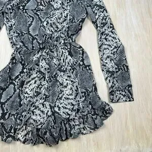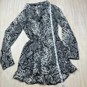 NWT Missguided Snake Animal Reptile Print Button Frill Sheer Chic Mini Dress 2