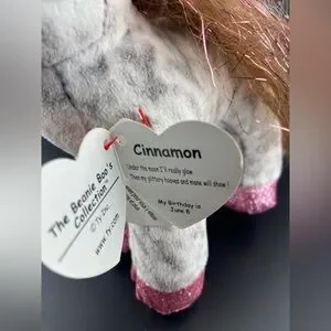 Cinnamon the spotted pony with her sparkling pink eyes has been gently loved and is in good condition. She would love to join a family that can continue to love her.