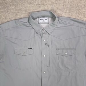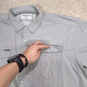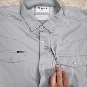 Poncho Shirt Mens 2XL Gray Peal Snap Pockets Vented Button Up Lightweight