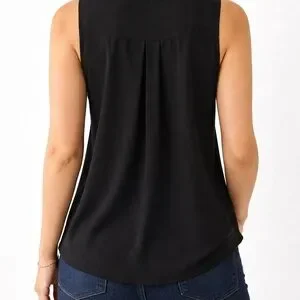 Michael Kors black sleeveless blouse with gold zipper detail.
