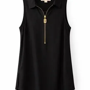 Michael Kors Black Sleeveless Blouse Gold Zip Front Size S