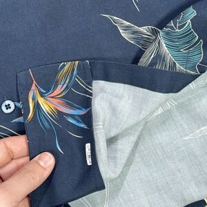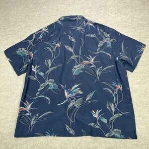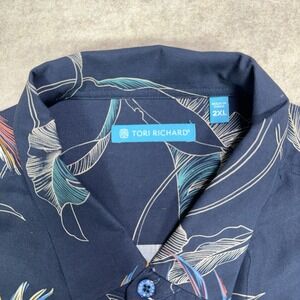 Tori Richard Shirt Mens 2XL Navy Blue Floran Hawaiian Silk Blend SS Button Up