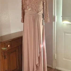 Sequin Bodice Long Evening Gown in Blush. NWT. OLEG CASSINI MARINA DRESS