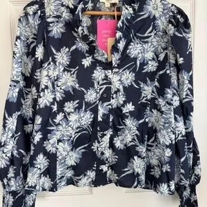 Never worn, great blouse from a boutique! Slight puff sleeve, button down, sleeves have a smocked ruffle detail by the wrists.