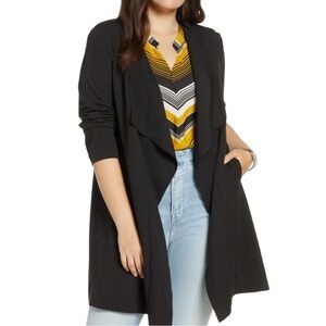 NWT Halogen Nordstrom Drape Open Front Lightweight Jacket Size S Black Pockets