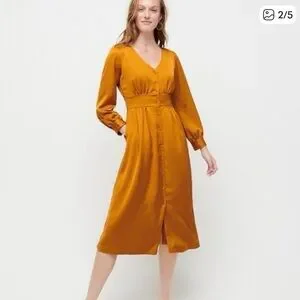 J. Crew NTW Button-Front A-line Midi Dress in Mustard sz 12