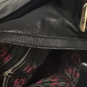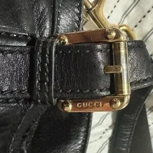 Gucci Black Leather Shoulder Bag with Gold GG Logo