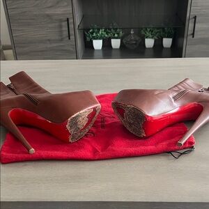 Christian Louboutin Brown Leather Platform Ankle Boots with Red Sole