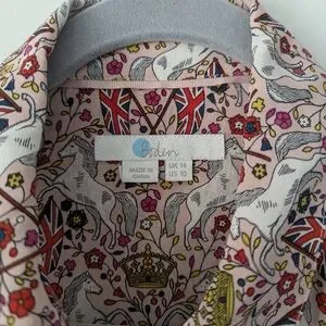 Boden Crown and Country 100% Silk Printed Union Jack Full Button Up Top