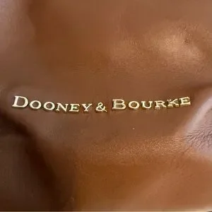 Dooney & Bourke Pebble Grain Satchel Bag in Smooth Brown Leather, Gold Accents