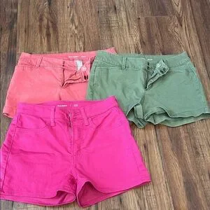 Stylish and versatile shorts by Old Navy. Features coral, olive, and fuchsia colors. Perfect for casual wear.