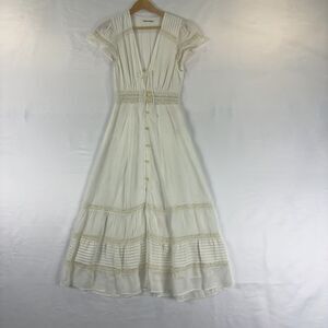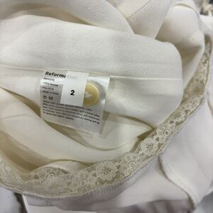 Embrace effortless elegance for any casual occasion with this stunning Reformation Short Sleeve Lace Trim Midi Dress White 2, a beautiful addition to any apparel collection. Crafted by the renowned Reformation brand, this midi dress features delicate short sleeves for comfortable wear. Its exquisite lace trim adds a touch of sophisticated charm, perfect for versatile styling from day to evening. The crisp white hue offers a fresh, timeless aesthetic, ensuring it pairs seamlessly with various accessories. Presented in like-new condition, this garment has been meticulously cared for, promising exceptional quality and ready-to-wear appeal for its next owner.