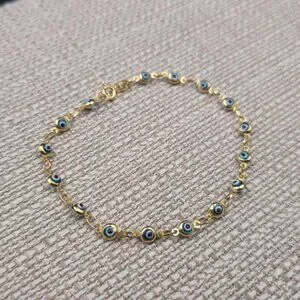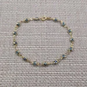 7.5 Inch Gold Over Sterling Silver Evil Eye Nazar Chain Bracelet A7304