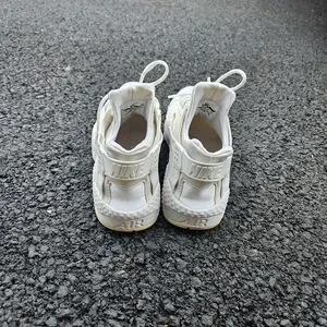 Nike Air Huarache sneakers in triple white colorway. Classic comfortable fit with a sleek everyday look.