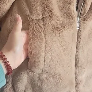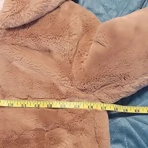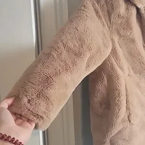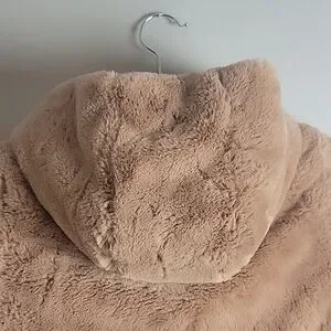 Faux fur coat that is extremely soft. Silver Zip closure. Front pockets. Size 9. A tan/blush color.