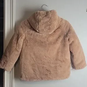 Zara-KIDS-Pink Faux Fur Hooded Coat-Size 9