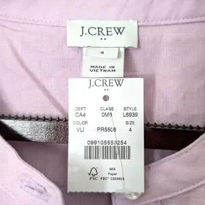 J. Crew Shirt-Dress in Vintage lilac Linen-Cotton Dress Size 4 NWT Style L6939