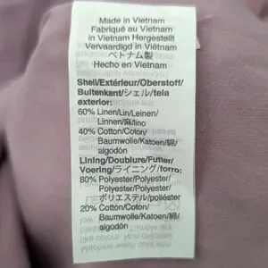 Material: Shell: 60% Linen, 40% Cotton | Lining: 80% Polyester, 20% Cotton