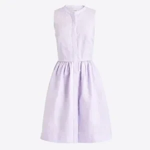 Fresh, feminine, and perfectly polished. This J.Crew sleeveless shirt-dress is a spring and summer staple. Crafted from a breathable linen-cotton blend in a gorgeous "Vintage Lilac" hue, it features a flattering waisted silhouette that falls to the knee. The button-front design and clean mandarin collar make it easy to dress up for a garden party or keep casual for weekend brunch.