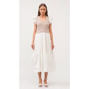 Anthropologie Sofie the Label Clover Mixed Knit Flutter Sleeve Midi Dress, S