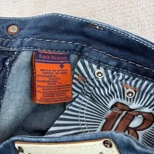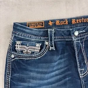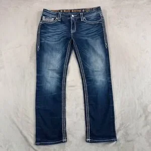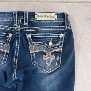 Rock Revival Avery Straight Jeans Western Rock Bling Embellished Women 31 Blue