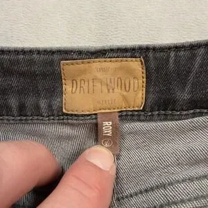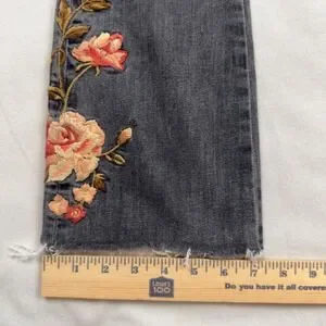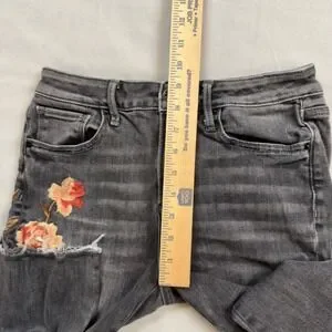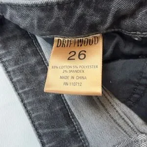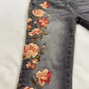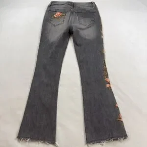 Driftwood Roxy Floral Embroidered Flare Jeans Gray Raw Hem Size 26 Classic Fit