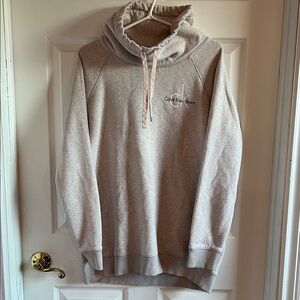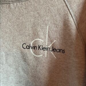 Calvin Klein Jeans pullover with a relaxed funnel neck and drawstring. Light heather gray knit with subtle logo on chest. Soft, midweight fabric for everyday wear. Clean, minimalist styling for casual outfits. One small stain on the back, would likely come out. No tag, but is a size Large.