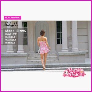 Tube Mini Dress Floral Print Tie Front Strapless Sleeveless Summer