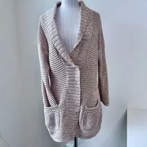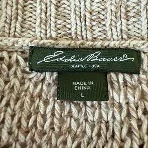 Eddie Bauer Chunky Knit Shawl Collar Cardigan Sweater Tan Beige Size Large