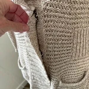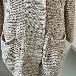 • Texture: Thick, chunky ribbed knit with unique panel detailing on.