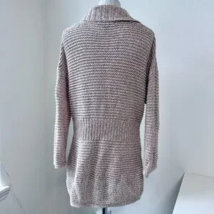 Stay cozy with this beautiful Eddie Bauer chunky knit cardigan. Featuring a relaxed shawl collar, 3/4 length sleeves and a marled neutral tone, this piece is the perfect weight for transitional weather. Its longer length and open-front style (no buttons) make it an easy layer over leggings or denim.