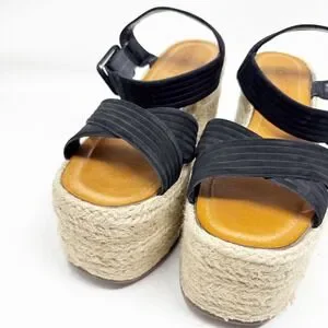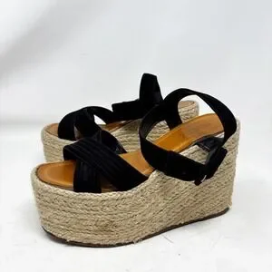 Schutz Black Suede Espadrille Platform Wedge Sandals Size 7.5 Natural Neutral