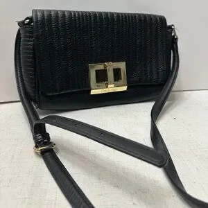 💜Calvin Klein Black Quilted Shoulder Bag with Gold-Tone Accent