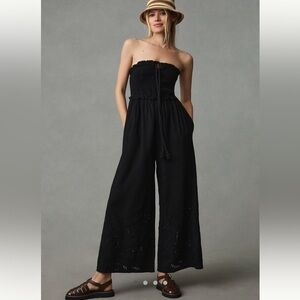 Anthropologie Black Strapless Jumpsuit with Eyelet Detail